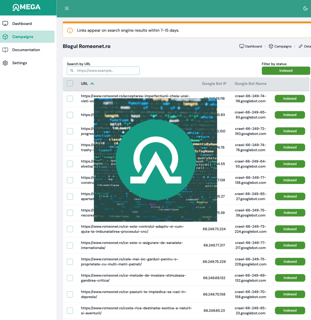 Urmărim și analizăm performanța fiecărui articol cu rapoarte transparente și actualizate. Cu ajutorul ping-ului automat către Google/Bing la fiecare articol nou, toate articolele postate pe blogurile noastre se indexează garantat.